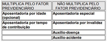 Benefícios que são calculados incluindo o Fator Previdenciário.