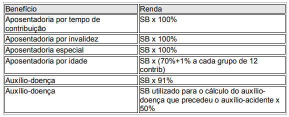 É a partir dos salários-de-contribuição (SC) dos segurados que calcula-se o salário-de-benefício (SB) e a partir deste, através da aplicação de percentuais previstos na Lei n° 8.213/1991, é obtida a renda dos benefícios.
