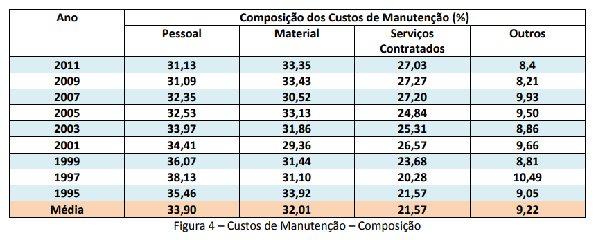 Conforme destacado no início do ítem 2, a razão de ser da Manutenção é garantir a Confiabilidade e a Disponibilidade dos ativos da planta industrial. A participação do PCM é contribuir para essa Confiabilidade e Disponibilidade, otimizando a utilização dos recursos (mão-de-obra e materiais). Se considerarmos que, mais de 60% dos custos de Manutenção são devidos a mão de obra e a materiais (figura 4), percebe-se a razão da criação dos núcleos de PCM. Se o PCM atinge esses objetivos, tanto ele contribui nos custos de Manutenção quanto na disponiblidade dos ativos na medida em que, ao otimizar os recursos da Manutenção, suas atividades aumentam a disponiblidade da planta, reduzindo os tempos de Parada.
