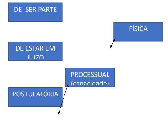 Capacidade para ser parte – capacidade de ter direito na órbita civil. Absolutamente incapaz (representação), Relativamente incapaz (assistência). Menoridade – tutor / demais casos – curador