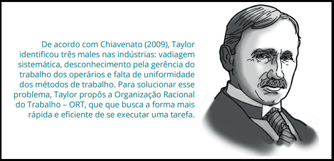 Nessa primeira fase, a administração se preocupava exclusivamente em criar métodos para o trabalho do operário visando melhorar a eficiência do processo produtivo. Por isso, entendia-se que “administrar é estabelecer e prescrever a maneira pela qual as pessoas devem executar o seu trabalho cotidiano”. Esse pensamento vem do trabalho do engenheiro americano Frederick W. Taylor (1856-1915), que é considerado o fundador da chamada Administração Científica.