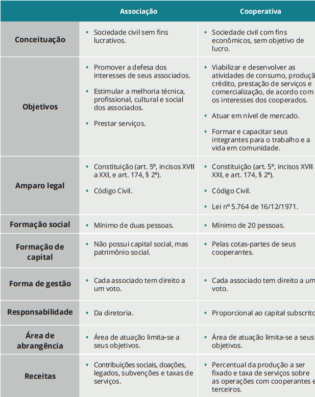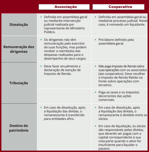 Quadro comparativo: associação x cooperativa