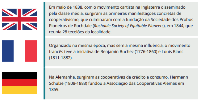 Robert Owen, fabricante inglês do final do século XVIII e início do XIX, foi o primeiro a tentar organizar uma empresa destinada a beneficiar os empregados e os consumidores no mundo moderno. Porém, não obteve grande sucesso. No mesmo período, William King, médico inglês, recomendou aos operários que possuíssem suas próprias máquinas. Para que você possa entender a diferença entre os conceitos de associação e cooperativa, consulte o quadro a seguir: