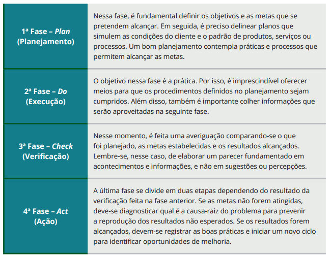 Essas quatro fases contribuem para a identificação dos problemas e as tomadas de decisões. Por isso, é importante saber que: