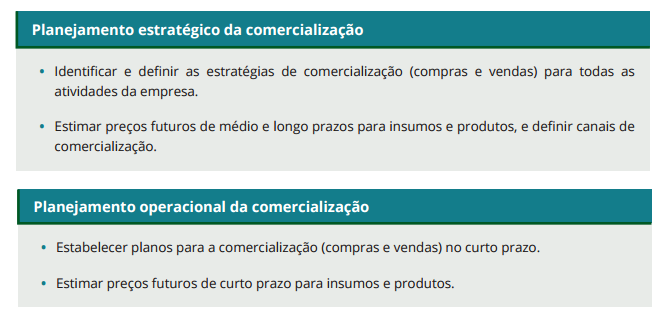 • comercialização: relaciona-se com as atividades administrativas de compras e de vendas de bens e serviços, com fornecedores e clientes, com os preços de produtos e fatores, entre outros;