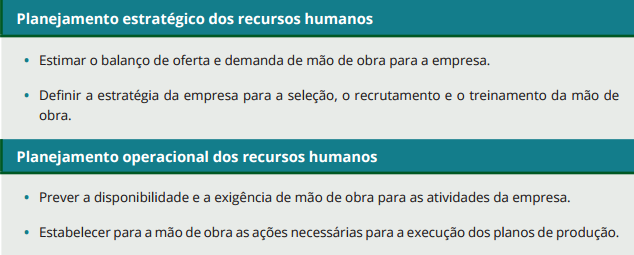 • recursos humanos: trata das pessoas que trabalham na empresa em termos de quantidade (oferta e demanda de mão de obra) e qualidade ou competências humanas (conhecimento, habilidades e atitudes).