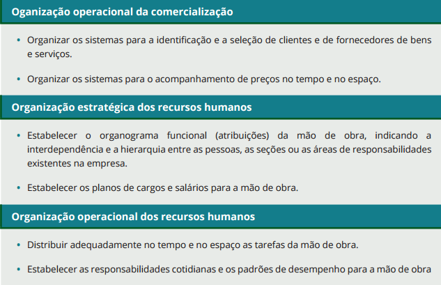 • organizar: constituir o duplo organismo, material e social, da empresa;