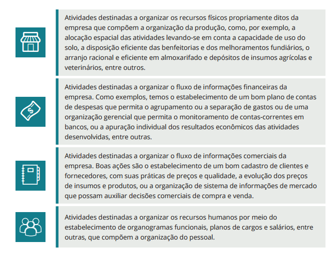 Empresas rurais mais bem administradas obtêm melhores resultados econômicos. Isso significa que uma melhor prática das funções administrativas (planejamento, organização, direção e controle) pelos produtores rurais pode contribuir positivamente para melhorar o resultado econômico de suas empresas. No entanto, apesar de as boas técnicas de gerenciamento estarem relacionadas ao sucesso econômico das empresas rurais, a maioria dos produtores rurais no Brasil ainda não adota, de maneira formal e eficiente, várias práticas administrativas que poderiam proporcionar maior competitividade aos seus negócios.