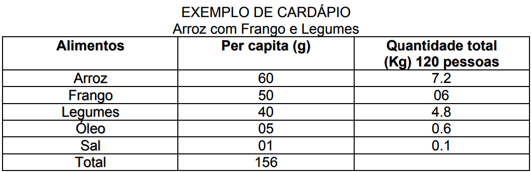 Cardápio é o conjunto de alimentos variados e que devem ser servidos diariamente durante as refeições.