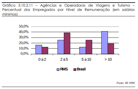 As remunerações dos empregados que atuam no setor de Agências e Operadoras de Turismo são as mais altas do setor turístico, tanto na RMS como no Brasil.