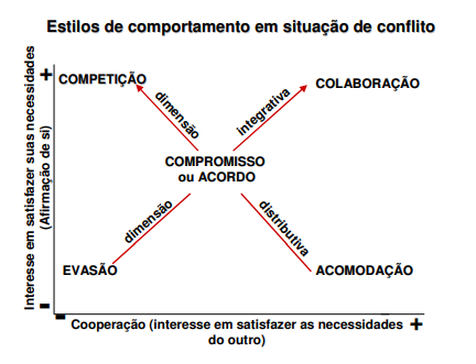 - perda do objetivo principal: as partes esquecem as preocupações que originaram o conflito para concentrar suas forças em “vencer” o outro. Esquece-se o objeto do conflito em proveito da vitória a qualquer preço;