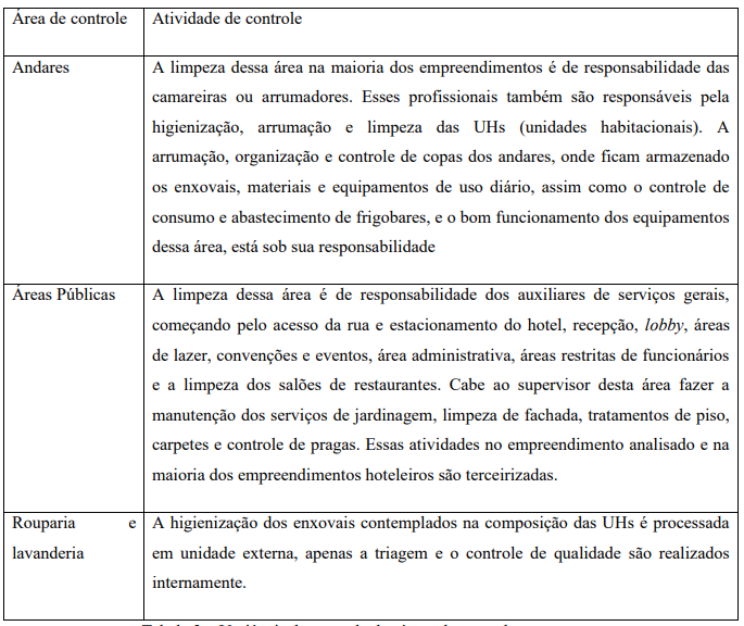 Diante da importância do setor para o funcionamento do hotel, tornam-se necessários diversos tipos de controles e relatórios gerenciais para o acompanhamento de uso de produtos químicos, amenities sabonetes, xampus e condicionadores, rouparia, entretanto somente o acompanhamento destes itens não tem sido suficiente para que haja melhora na eficiência dos processos executados, por este motivo é necessário recorrer a outras metodologias e formas de gerenciar.