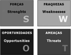 Da análise das forças e fraquezas (provenientes do ambiente interno da empresa) e das ameaças e oportunidades (originadas no macro e microambientes) resulta a Matriz SWOT (em inglês, SWOT significa strengths, weaknesses, opportunities e threats).