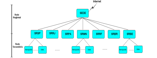 A Rede Regional interliga a Sede da INFRAERO às suas Superintendências Regionais. A conexão se dá por meio de circuitos com tecnologia ATM (Asynchronus Transfer Mode) na velocidade mínima de porta de 34 megabites por segundo (Mbps), com as capacidades nominais de 2 a 4 Mbps (INFRAERO, 2003).