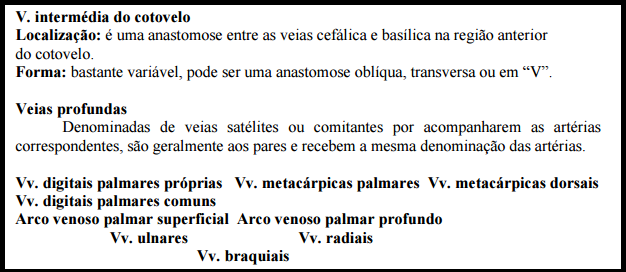 Com poucas exceções, as veias profundas acompanham as artérias. A maioria das veias profundas que acompanham as artérias no antebraço, braço, abaixo do joelho e em poucas outras localizações, são duplas, portanto, satélites às artérias. Estes feixes vasculares (artéria e veias) estão envoltos por uma bainha conectiva; esta bainha é constituída por feixes conectivos que enlaçam a artéria e as veias, passando alternadamente da face anterior de um vaso para a face posterior do outro; além destes feixes conectivos, há outros que envolvem o anterior superficialmente, como uma bainha comum. Deste modo, o feixe vascular encontra-se no interior de um estojo conectivo elástico pouco distensível (Von Lanz e W. Wachsmuth), dentro do qual as pulsações arteriais se transmitem às veias vizinhas. As pulsações arteriais agem sobre as paredes venosas e o sangue contido no seu interior segue a direção determinada pelas válvulas. As veias superficiais são independentes de artérias.