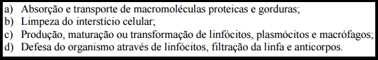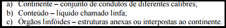 O líquido que circula no interior dos condutos linfáticos é a linfa que procede do líquido intersticial assimilado pelos capilares linfáticos. É de cor levemente amarelada, transparente, faz exceção a linfa intestinal que é branca e leitosa pelo teor em gorduras, denominada quilo.