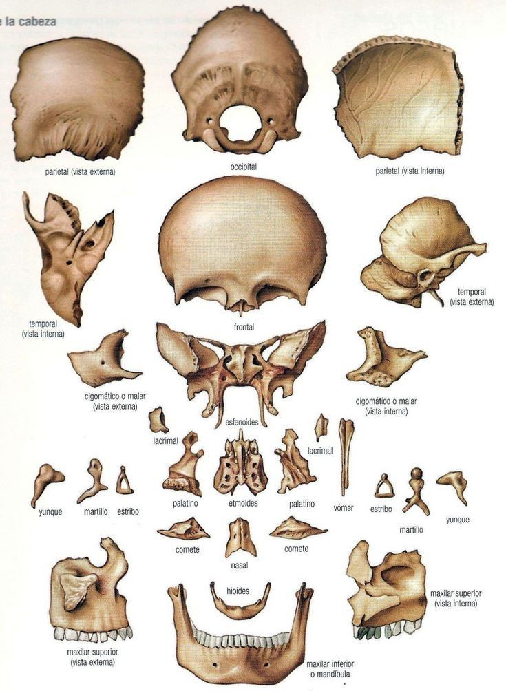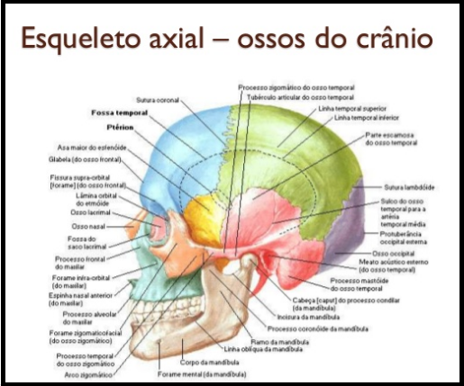 - Caixa craniana ou neurocrânio – a parte que envolve o cérebro e os órgãos dos sentidos (com exceção do paladar); e