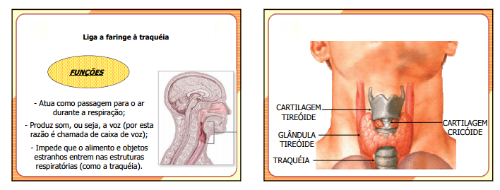 Mais inferior é a região laringofaríngea, que se comunica com a entrada da laringe (no sistema respiratório) e mais abaixo com a abertura do esôfago (no sistema digestório).