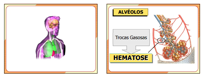 A função principal do sistema respiratório é, basicamente, garantir as trocas gasosas com o meio ambiente. O processo de troca gasosa no pulmão, dióxido de carbono por oxigênio, é conhecido como hematose pulmonar. Mas também ajuda a regular a temperatura corpórea, o pH do sangue e liberar água.