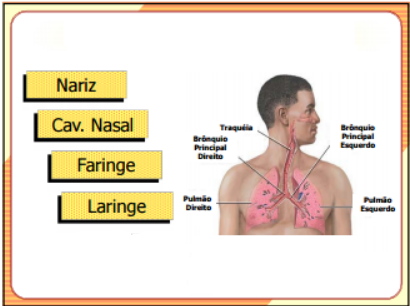 De toda forma, são estruturas localizadas fora da cavidade torácica, ia saber o nariz, cavidades nasais, faringe e laringe, cuja função é filtrar, aquecer e umidificar o ar.