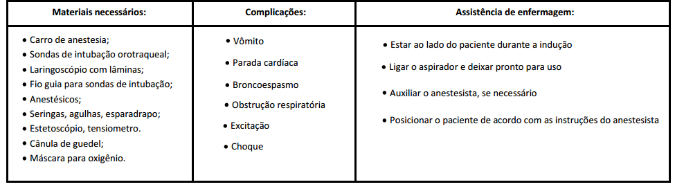 Indução: inicia-se com a administração do anestésico até atingir um grau de depressão do sistema nervoso central (SNC), sem ocorrer à perda da consciência, sem ocorrer à perda da consciência, sem sentir dor, preservando as funções vitais.