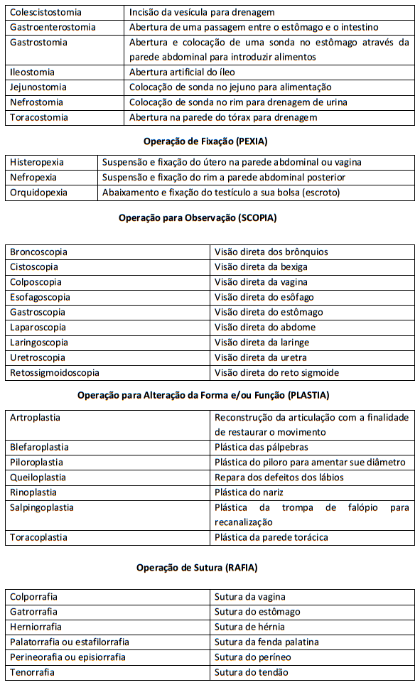 Terminologia Cirúrgica: A terminologia cirurgia é o conjunto de termos utilizados para indicar o tratamento cirúrgico a ser realizado.