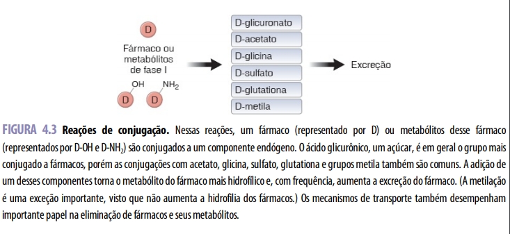 É importante assinalar que as reações de conjugação e de hidrólise não constituem, necessariamente, a última etapa de biotransformação. Como a conjugação desses componentes altamente polares ocorre no interior da célula, eles frequentemente precisam atravessar as membranas celulares por transporte ativo para serem excretados. (Pode ocorrer também transporte ativo do fármaco original.) Além disso, alguns produtos de conjugação podem sofrer metabolismo adicional.