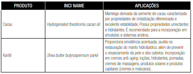 Manteigas e óleos conferem hidratação e não são afetadas pelos tensoativos.