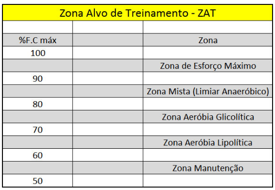 E a Zona Alvo é a faixa de treino que deve se trabalhar. Ou seja, uma FCmáx de trabalho e uma FC mínima que ocorra alterações.