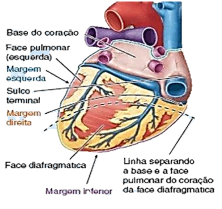 Face esternocostal (anterior): Formada principalmente pelo ventrículo direito.