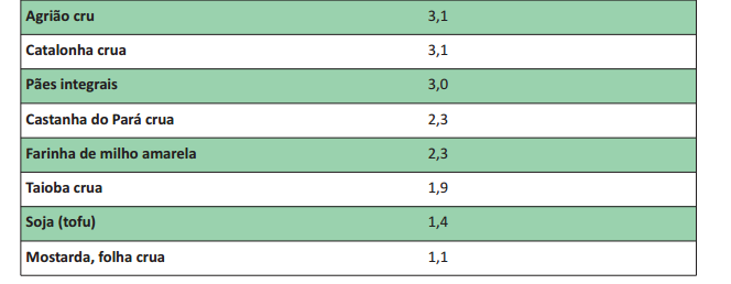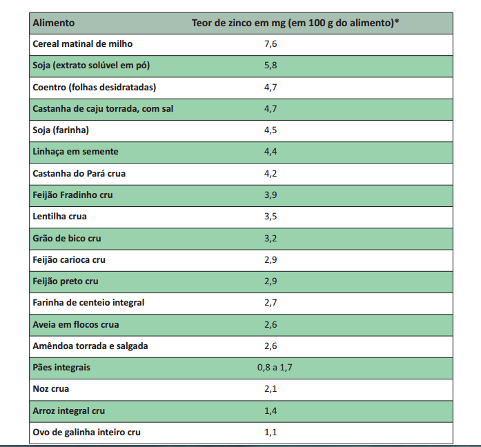 A Tabela 20 mostra algumas fontes de zinco na dieta vegetariana: