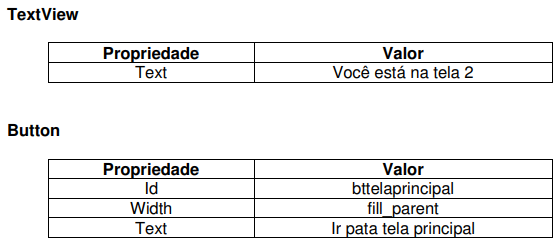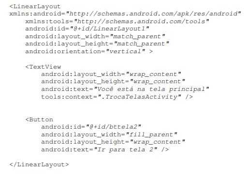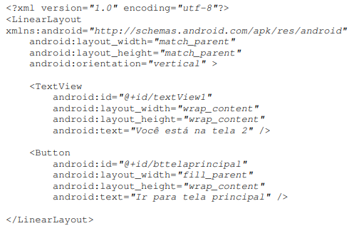 Seguindo os passos acima, o layout do arquivo “tela2.xml” deve estar de acordo com a figura abaixo: