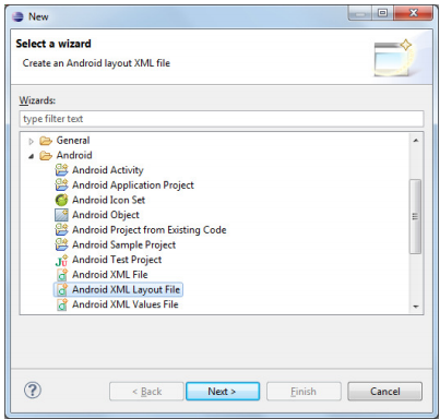 Feito isso será aberto uma tela com várias pastas, você irá expandir a pasta “Android” e em seguida vai selecionar a opção “Android Layout XML File”, conforme mostra a figura seguinte: