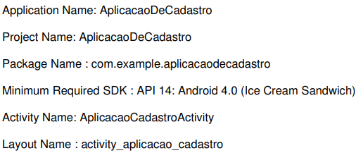 Para iniciar,vamos criar um novo projeto Android com os seguintes dados abaixo: