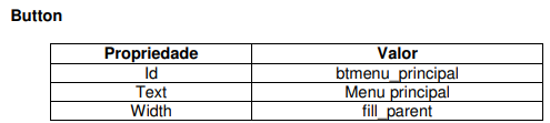 Agora vamos adicionar um Button logo após a estrutura “layoutBotoes” que criamos com as seguintes propriedades abaixo: