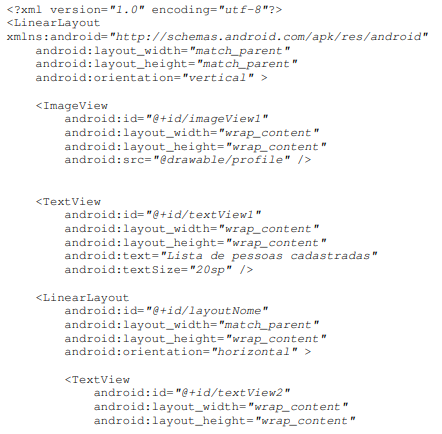 Vejamos agora a estrutura em XML da tela de listagem de pessoas cadastradas: