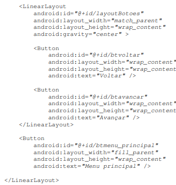 Agora dentro da estrutura “layoutBotoes” vamos adicionar os seguintes componentes na sequência:
