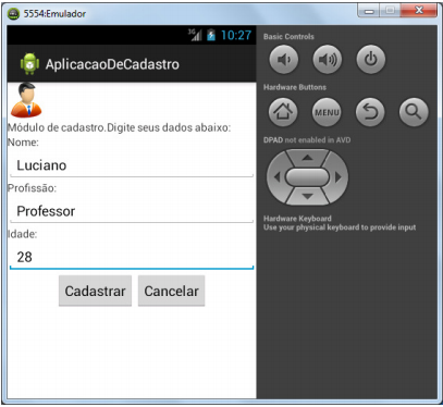 Nessa aplicação o usuário vai informar os seguintes dados : nome, profissão e idade.