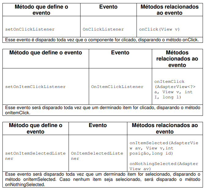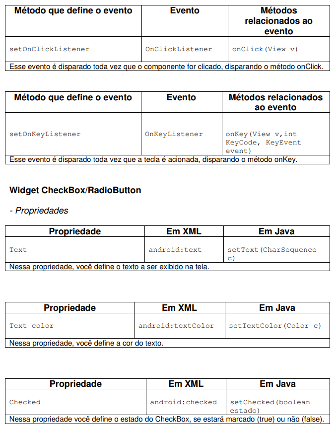 Agora iremos mostrar e descrever as propriedades e os eventos de todos os componentes que visualizamos nas apostilas.