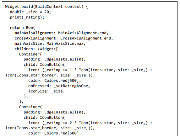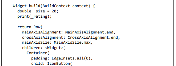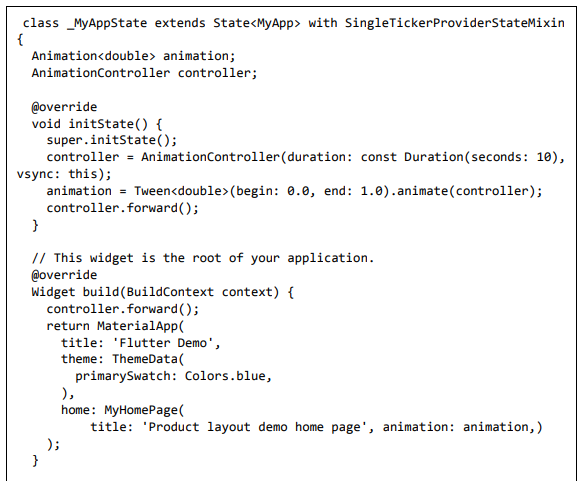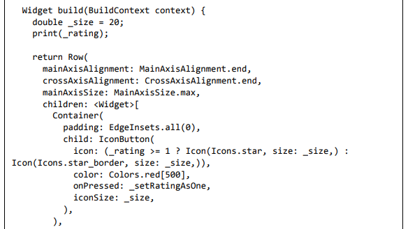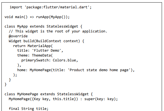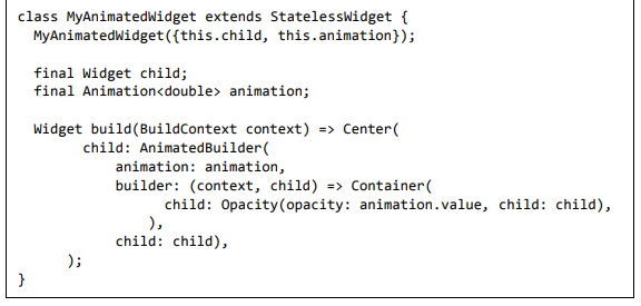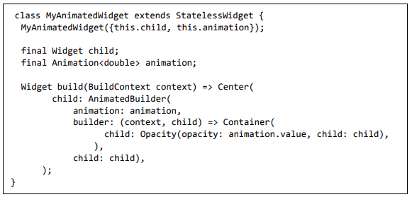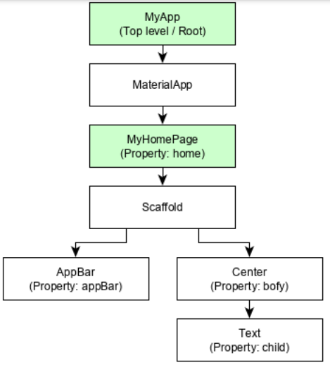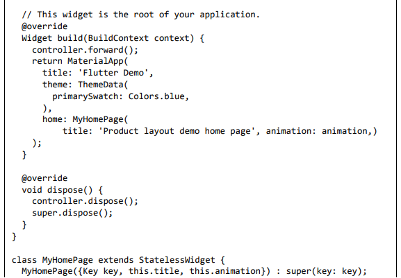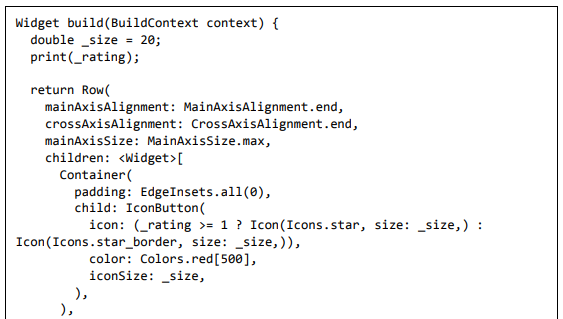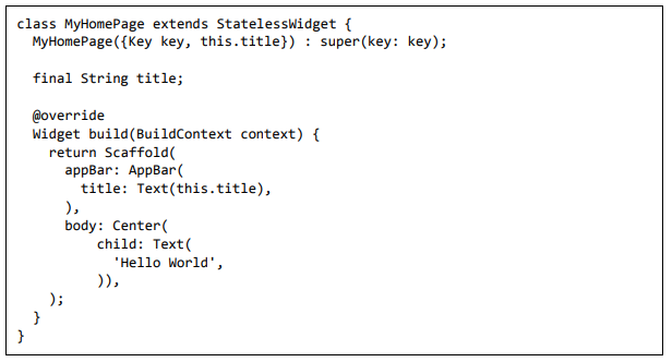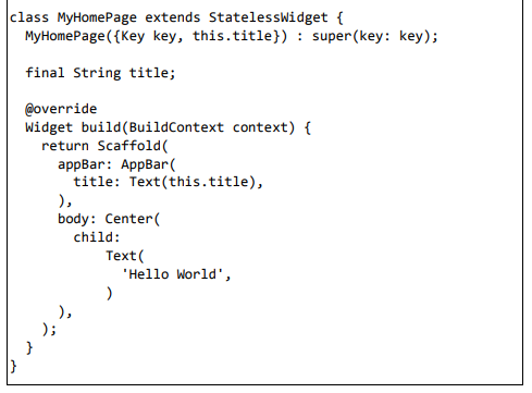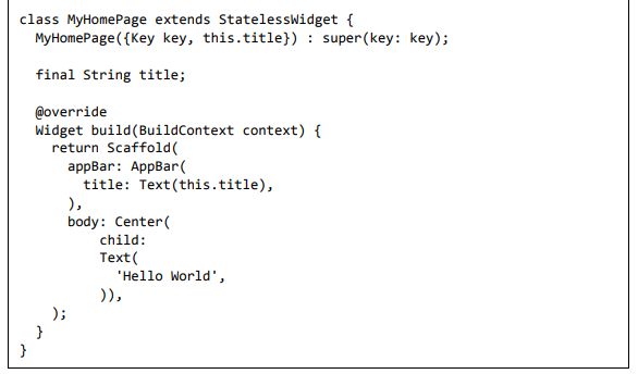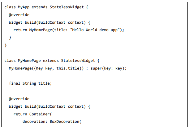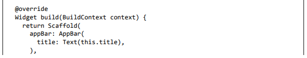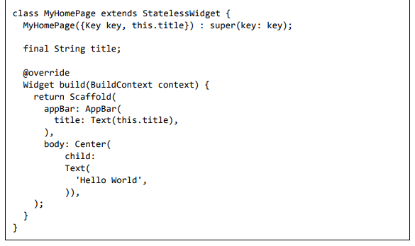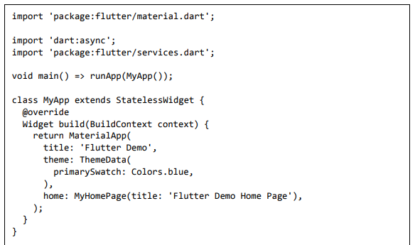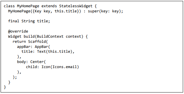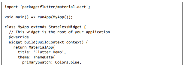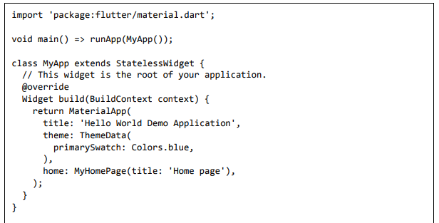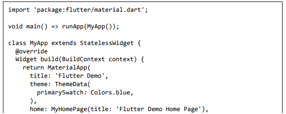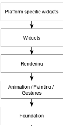 Para ser específico, o aplicativo Flutter é em si um widget. Os widgets Flutter também suportam animações e gestos. A lógica da aplicação é baseada na programação reativa. Widget pode opcionalmente ter um estado. Ao alterar o estado do widget, o Flutter irá automaticamente (programação reativa) comparar o estado do widget (antigo e novo) e renderizar o widget apenas com as alterações necessárias, em vez de renderizar novamente o widget inteiro.