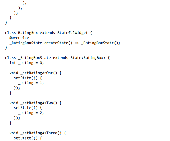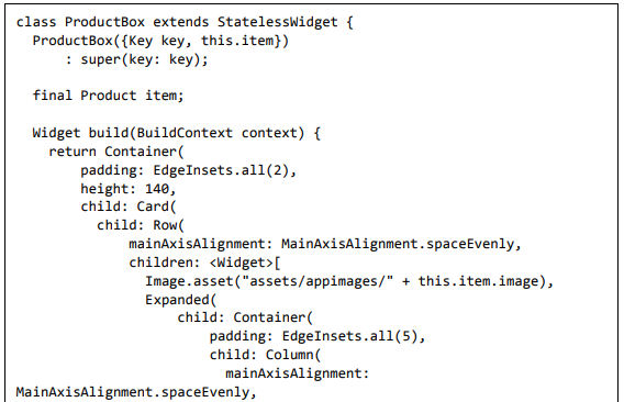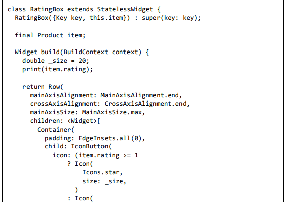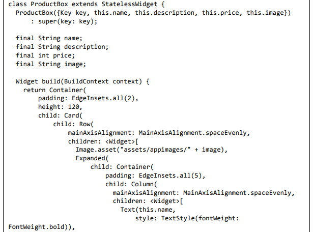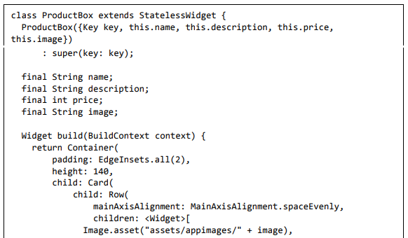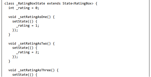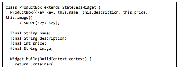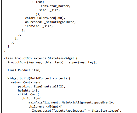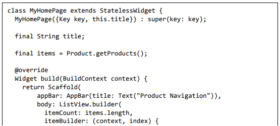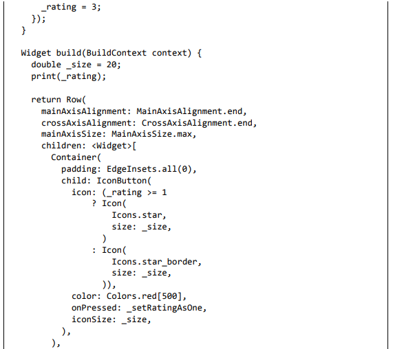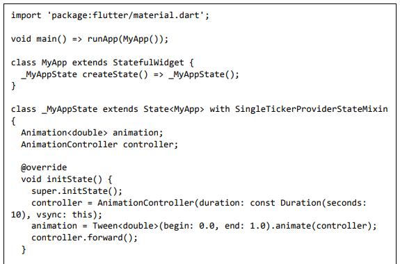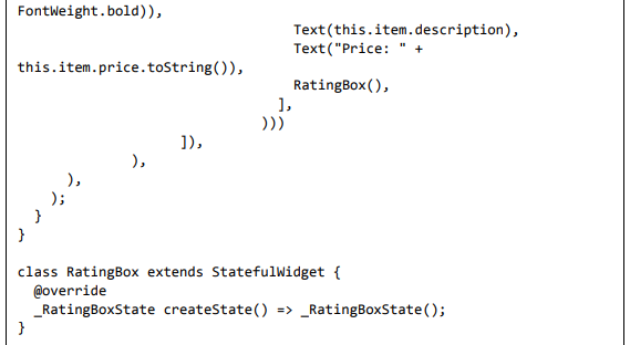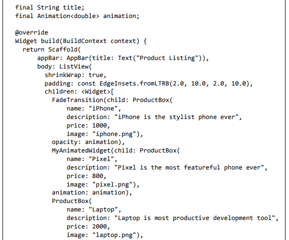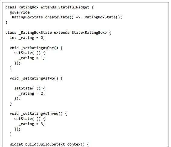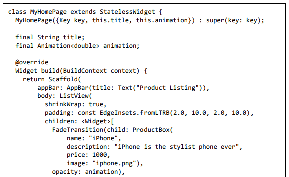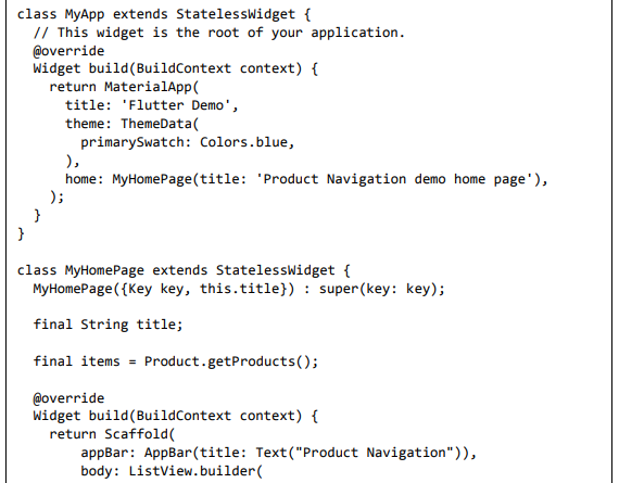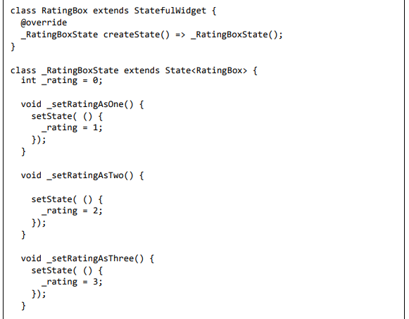 Para ser específico, o aplicativo Flutter é em si um widget. Os widgets Flutter também suportam animações e gestos. A lógica da aplicação é baseada na programação reativa. Widget pode opcionalmente ter um estado. Ao alterar o estado do widget, o Flutter irá automaticamente (programação reativa) comparar o estado do widget (antigo e novo) e renderizar o widget apenas com as alterações necessárias, em vez de renderizar novamente o widget inteiro.