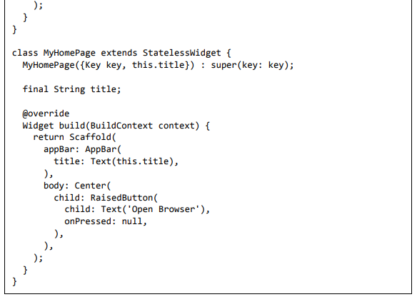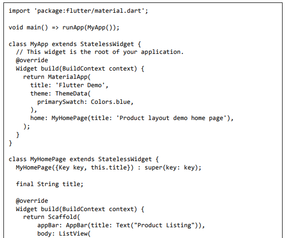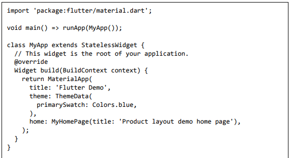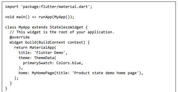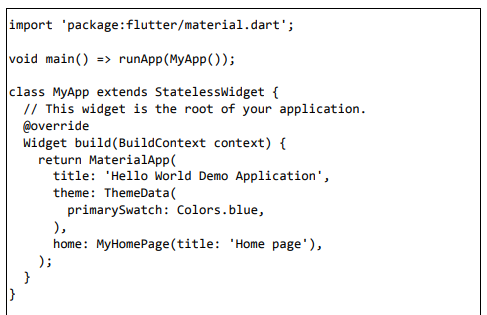 • Crie um MyApp simples usando o widget MaterialApp.