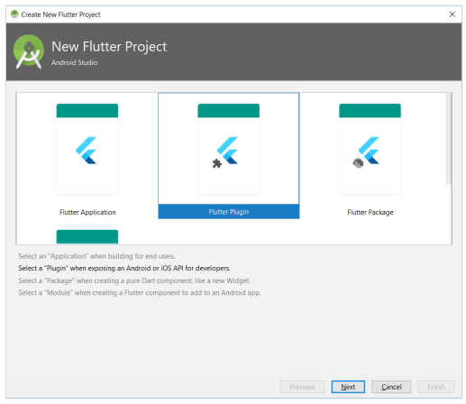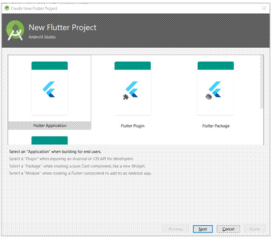 Para isso, selecione Flutter Application e clique em Next .