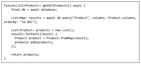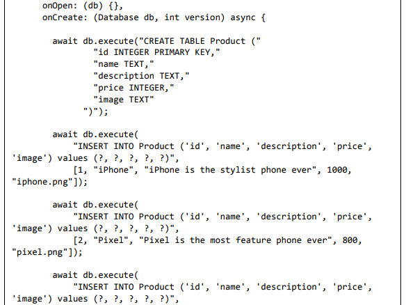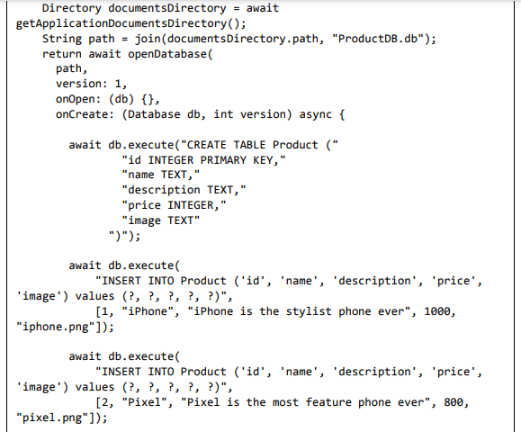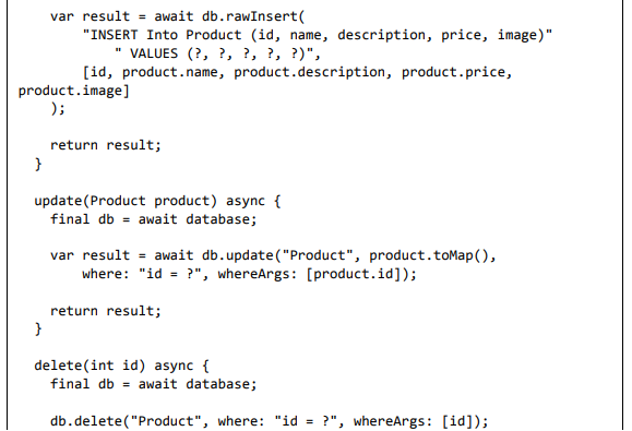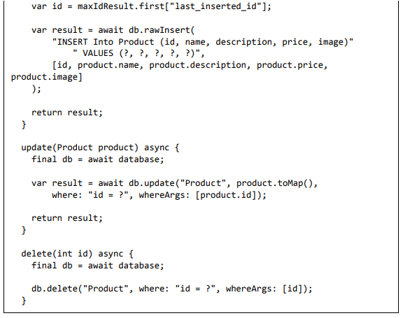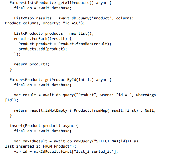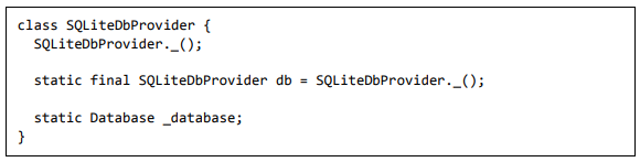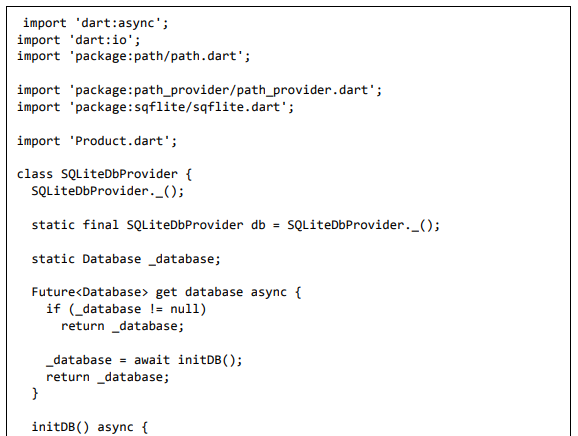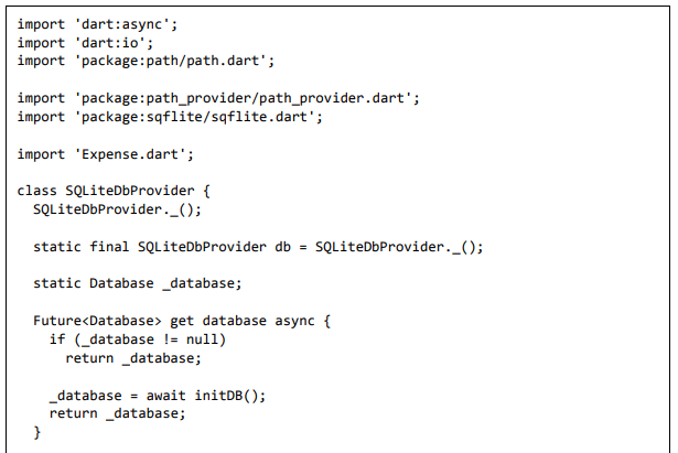 • Adicione um novo arquivo, Database.dart para criar a classe SQLiteDbProvider. O objetivo da classe SQLiteDbProvider é o seguinte: