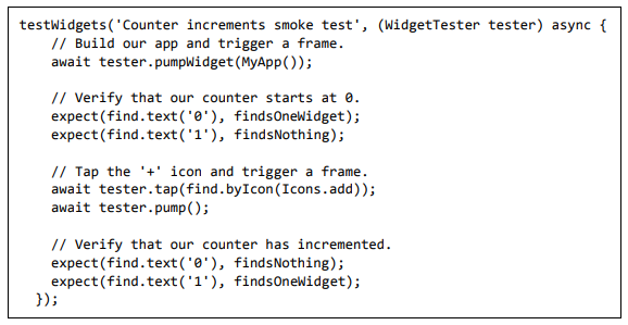 • Flutter precisa de menos testes. Por causa de sua base de código única, é suficiente escrever testes automatizados uma vez para ambas as plataformas.