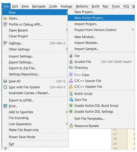 Para isso, clique em Arquivo -> Novo -> Novo Projeto Flutter