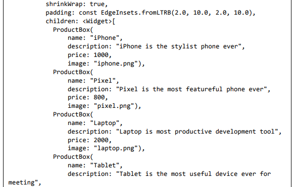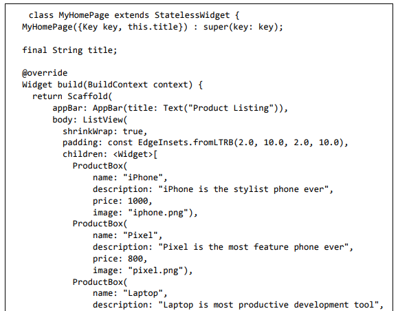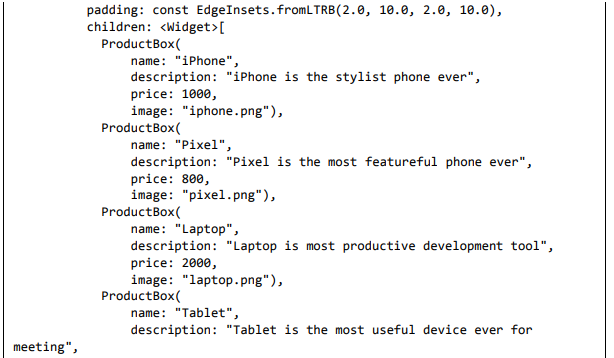 O Flutter também oferece muitos widgets (UI) prontos para usar para criar um aplicativo moderno. Esses widgets são otimizados para ambientes móveis e projetar o aplicativo usando widgets é tão simples quanto projetar HTML.