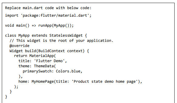 • Abra o arquivo main.dart. Importe as classes conforme especificado abaixo: