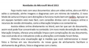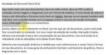 Lembre-se: Sempre que precisar formatar um texto, deve-se primeiramente selecioná-lo, informando ao programa qual será o trecho que receberá a nova formatação, caso contrário, o Word 2013 não irá entender qual tarefa você quer realizar.