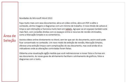 A Área de Seleção corresponde ao espaço em branco ao lado esquerdo do texto.